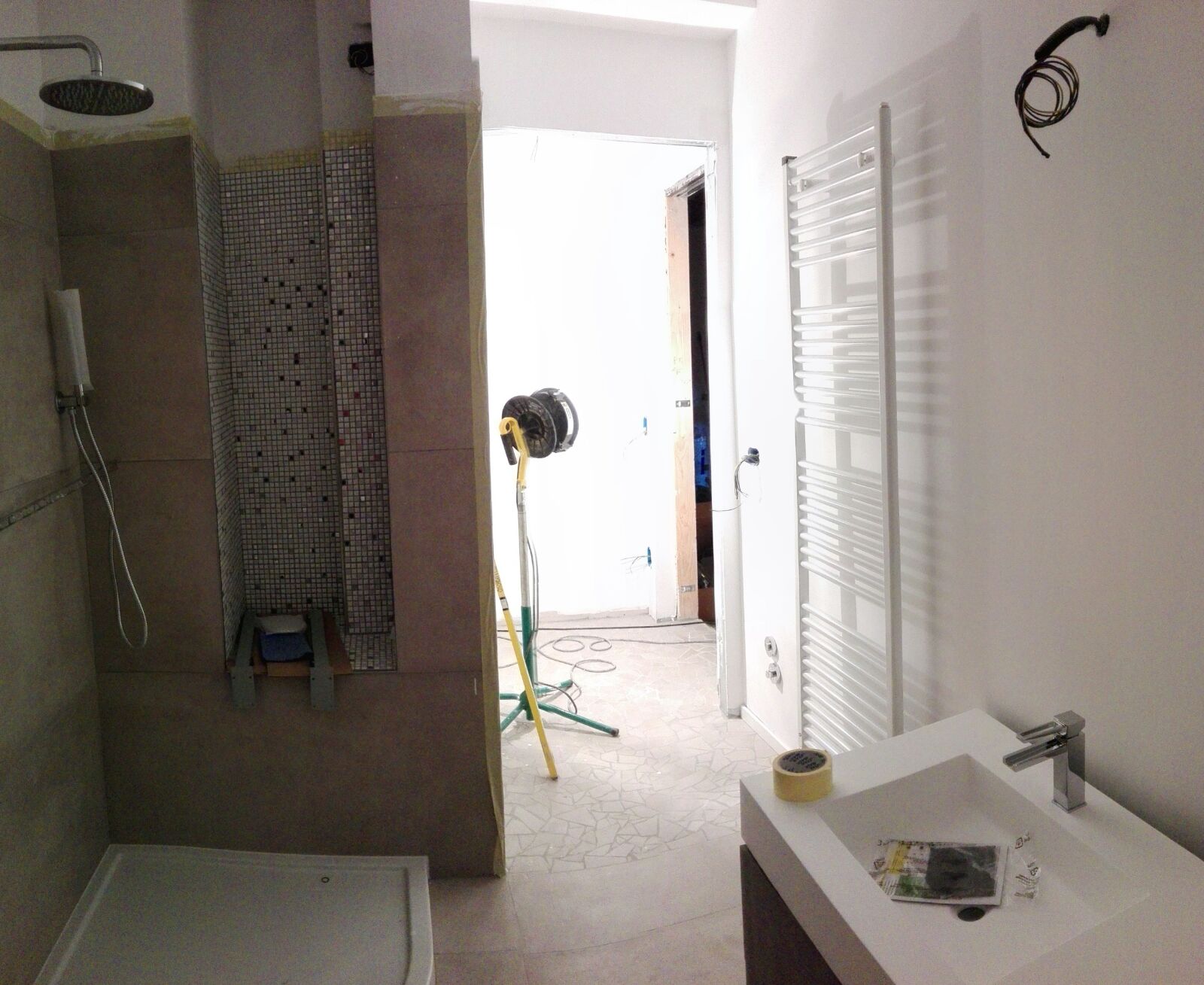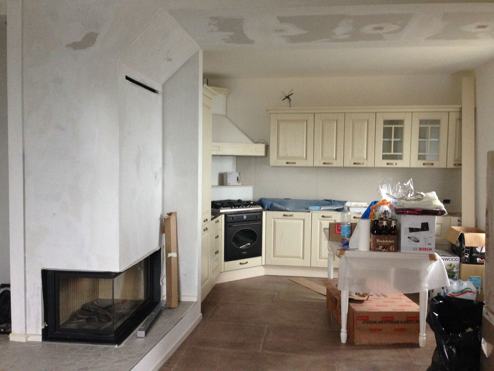 La realizzazione di questo progetto ha permesso di fondere due appartamenti grezzi in una sola unità immobiliare composta da soggiorno/cucina, bagno e lavanderia al primo piano, e tre camere e bagno al secondo piano.